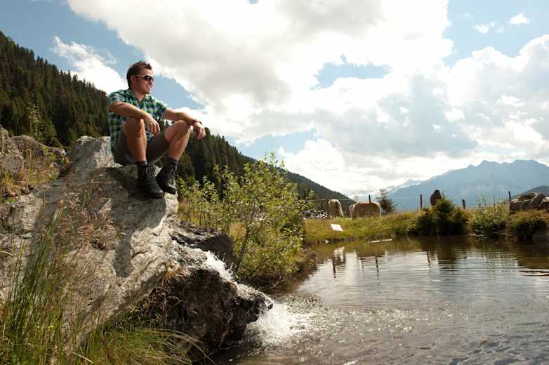 Ausrasten am Ufer des Flusses. Foto: Wildkogel Arena, Wildkogel-Arena Bildergalerie (6)