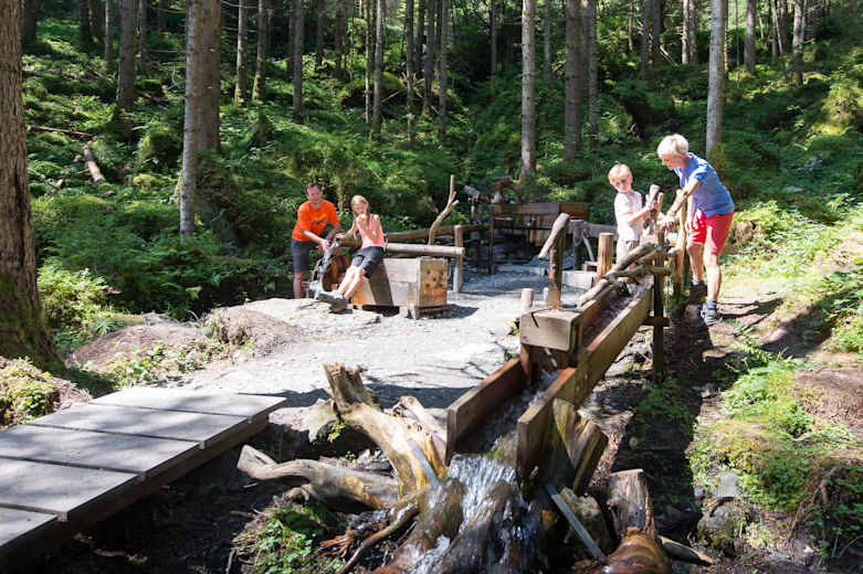 Am Gasthof Alpenrose und der Enzianhütte können sich die Kinder am Spielplatz und bei den Klettermöglichkeiten austoben, bevor es für große und kleine Schatzsucher selbst zum Smaragdschürfen auf der nahe gelegenen Mure geht. Die Schürfausrüstung kann direkt im Gasthof geliehen werden und mit etwas Geduld hat jeder die Chance, einen Samaragd zu finden.