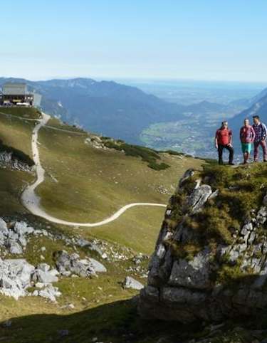 Von der Seilbahnstation in Richtung Süden nimmt man den Weg Nr. 30 und 31 - Landsberger Hütte. Weg Nr. 30 führt mit ein wenig Höhenverlust zur Oberen Stindenalpe (1.682 m), während der Weg Nr. 31 das Kar der Sulzspitze quert und schließlich auf den Saalfelder Höhenweg trifft. Der Saalfelder Höhenweg (Nr. 421) ist ein breiter Panoramaweg, der vom Haldensee im Tannheimer Tal herauf führt und sein Ende an der Gappenfeldalpe auf 1.860 m findet.