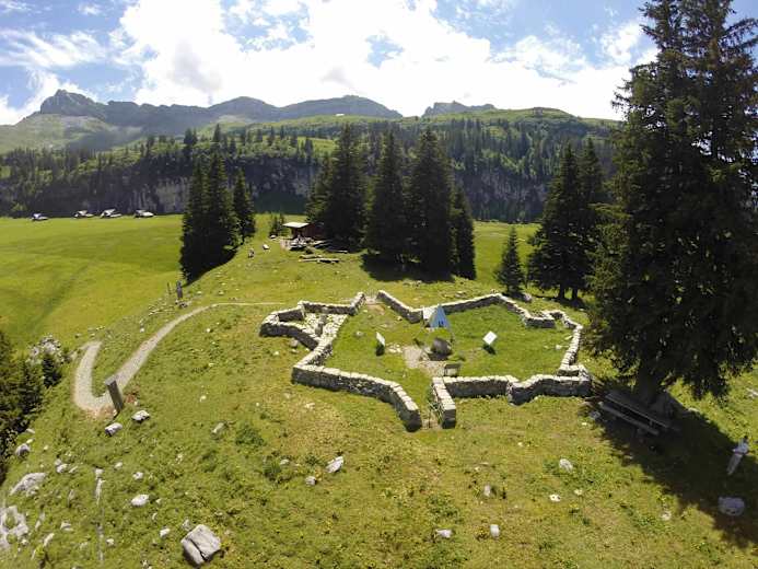Auf der Aelggialp am Mittelpunkt der Schweiz Foto: Obwalden Tourismus Drohnenaufnahme vom Mittelpunkt der Schweiz Foto: Obwalden Tourismus - Florian Spichtig