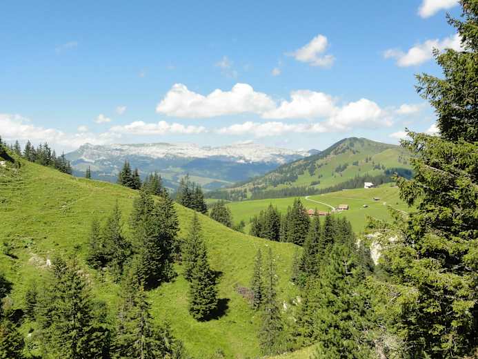 Von dort geht es weiter über Rückenegg, Mändli, Chringe, Fontanen, Alpoglen zurück zum Ausgangspunkt der Tour auf der Mörlialp.