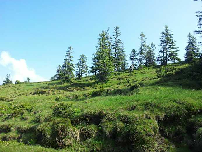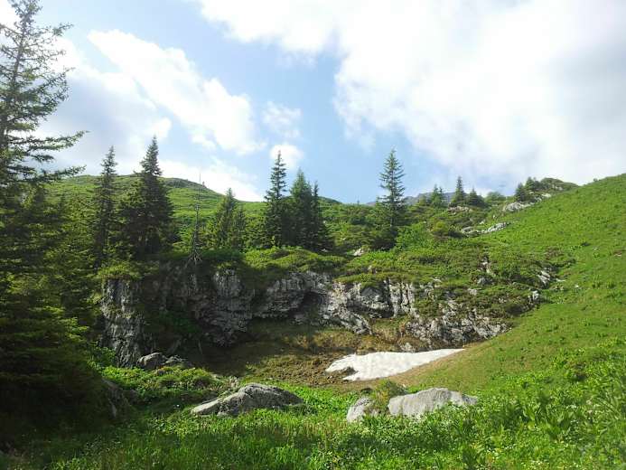 Zur Feldalp geht es nun um den Roten Dossen herum und der Abstieg hinunter bis zum Märenschlag erfolgt durch den Wald. Das Alpsträsschen führt einen zurück zur Lütholdsmatt, wo man sich bei der Bergwirtschaft eine kühlen Erfrischung genehmigen kann.