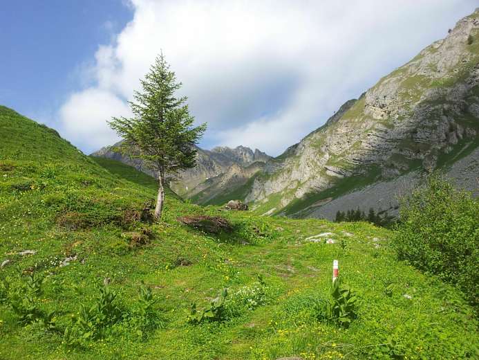 Startpunkt ist die Lütoldsmatt und von dort geht es gemütlich auf der Alpstrasse vorbei am Schyhüttli und der Flyschalpen Märenschlag-Balsimatt-Wängen, wo man etwa 110 Tage das Jungvieh beim Weiden beobachten kann. Der Blick über das Kleine und Grosse Schlierental bietet sich hier und nun zweigt der Weg ab und geht kurz und steil hinauf zum Wängengrad und zur Tripolihütte.