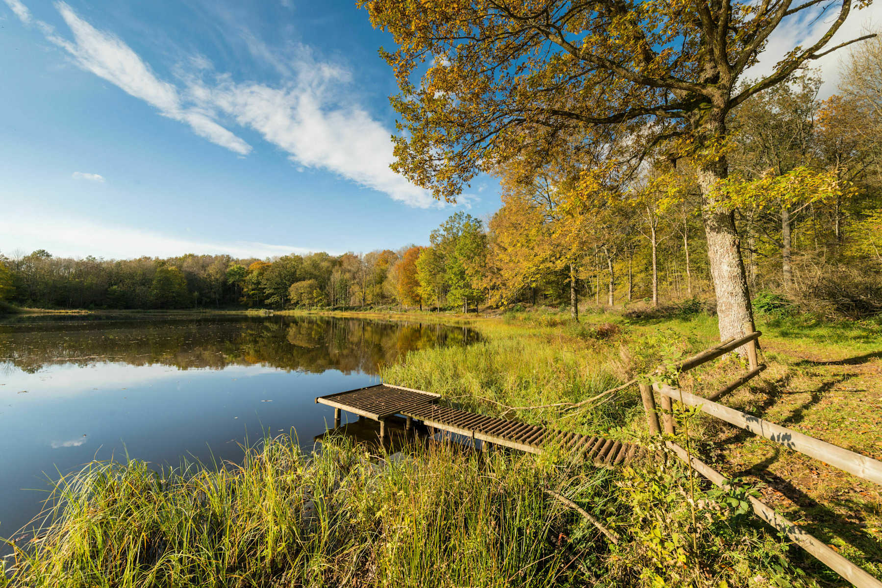 Bald aber führt der Weg nach Western, vorbei am Drei Tannenhof und direkt zur L 46, der man linker Hand ein kurzes Stück folgt, bevor der Pfad rechts wieder weiter nach Westen führt. Kurz bevor man die Kleine Kyll quert, verlässt der VulkaMaar-Pfad den Eifelsteig.