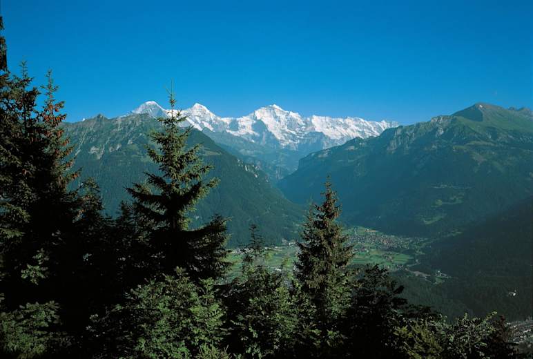 Eindrucksvoll ist die Aussicht vom Zwei-Seen-Steg. Eindrucksvoll ist der Blick zu Eiger, Mönch und Jungfrau, sowie hinunter zum Thuner See und zum Brienzer See.