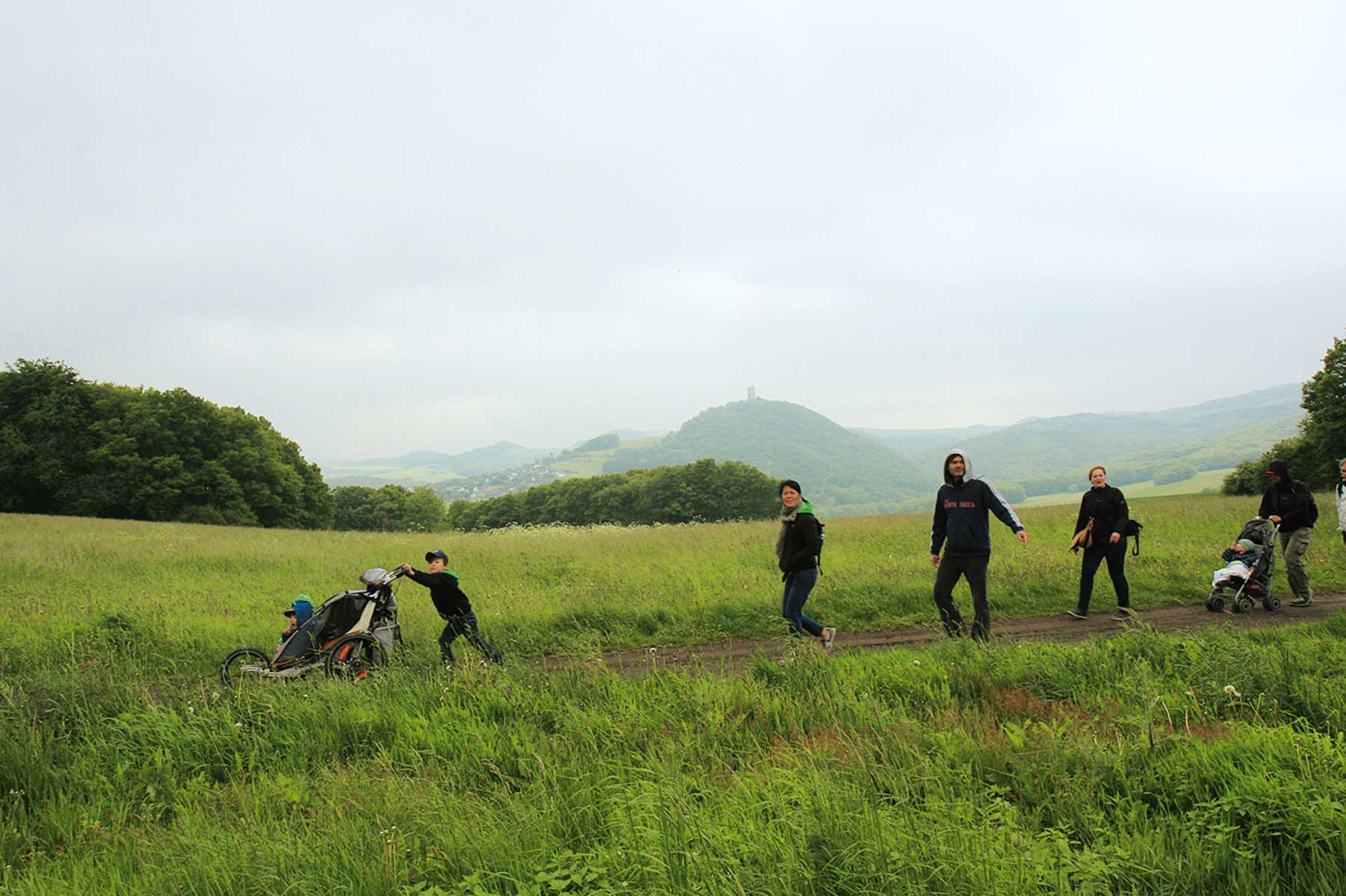 Mit Babys ist die mittelschwere Wanderung wegen der weiten Anfahrt eher ungeeignet. Sie führt mit wechselnden Markierungen überwiegend über flache Passagen, hat aber auch drei Steigungen: nach Engeln, zur Ruine Olbrück und zum Rodder Maar. Nach den letzten beiden Anstrengungen werden wir mit einer fantastischen Aussicht auf schöne Landschaften und wertvollen Einblicken in die Geologie der Vulkaneifel belohnt.