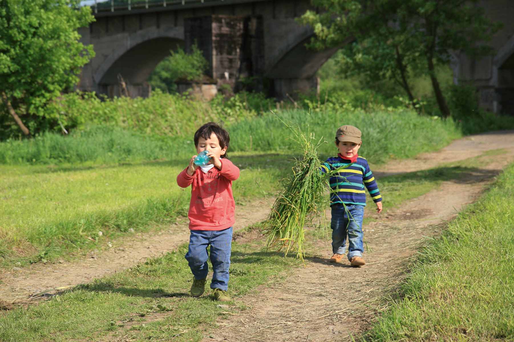 Entlang der gesamten Wegstrecke bieten immer wieder schöne Wiesen oder Rastbänke Gelegenheit zum Verschnaufen, Stillen oder Wickeln. In der weitläufigen Klosteranlage Bödingen sollte man vielleicht kein Picknick veranstalten, aber die alten Bäume bieten eine schöne Gelegenheit zur Rast, zudem öffentliche Toiletten.