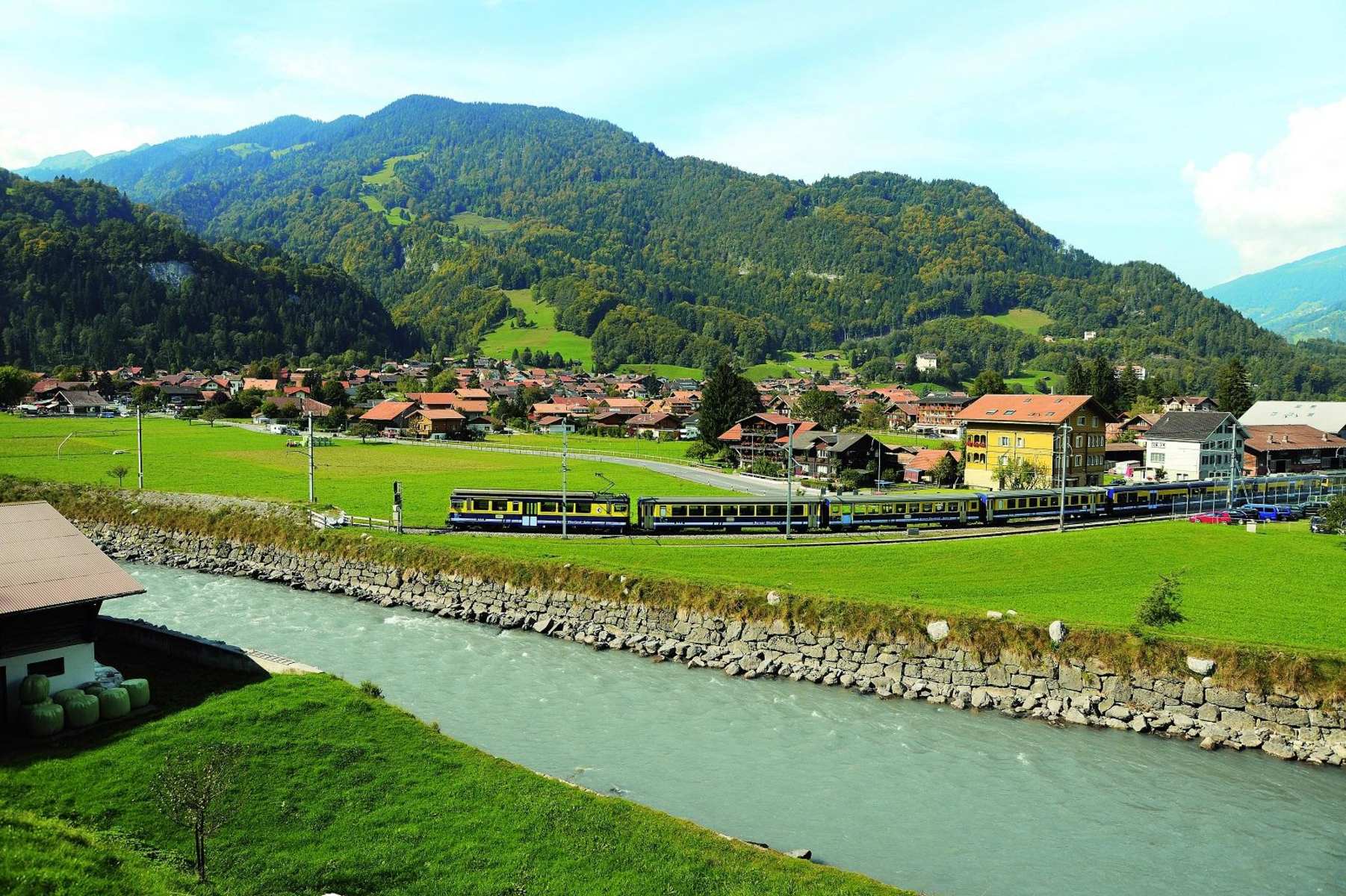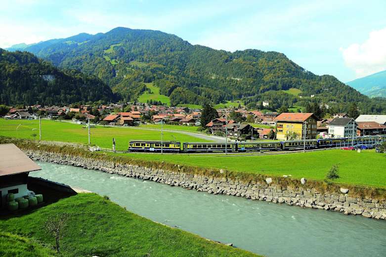 Mit der Bahn zum Bahnhof Wilderswil fahren.