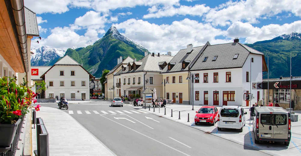 Das Zentrum von Bovec Foto: David Štulc Zornik, Tourismusbüro Bovec - AlpeAdriaTrail