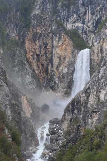 Vorbei an einem kleinen Golfplatz gelangt man zum größten Wasserfall von Slowenien, dem Boka. Bei Log Čezsoški trifft man nun wieder auf die Soča.
