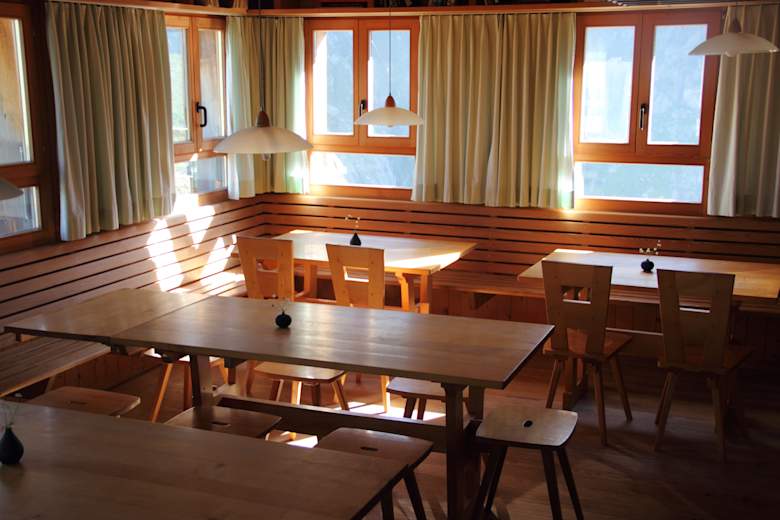 2.) Die beiden anderen führen links an Bosslis Stein vorbei, entlang des Trift-Hüttenweges. Nach etwa 20 Minuten biegt der Familienweg rechts ab und führt, weniger steil ansteigend als der direkte Hüttenweg, zur Hütte.
