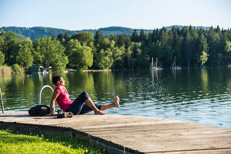 Vorbei an zauberhaften Weingärten und hinauf auf den kleinen Zingelsberg, von dessen Gipfel aus man die tolle Aussicht auf den Biosphärenpark Nockberge und die Kärntner Gurktaler Alpen genießen kann, bevor die Runde über Maltschach wieder zurück zum See führt.
