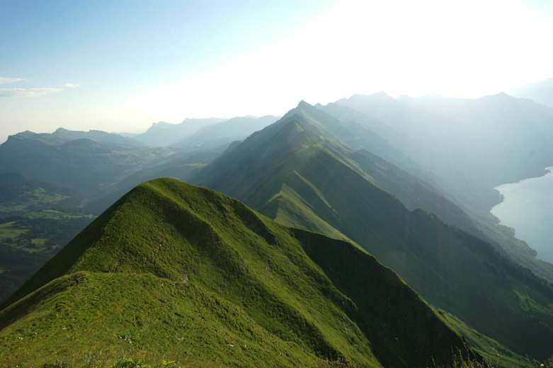 Der Weitblick vom Augstmatthorn beinhaltet Aussicht über den Brienzersee auf die Schynige-Platte-Faulhorn-Kette, im Norden liegt der Hohgant und der Güggisgrat zeigt sich im Westen.