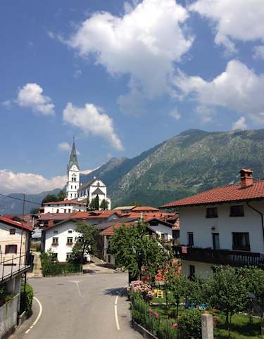 Der Straße und dem Wildbach Kozbanjsek folgend, erreicht man den Ort Peternel. An der nächsten Straßenkreuzung geht es aufwärts nach Hlevnik.