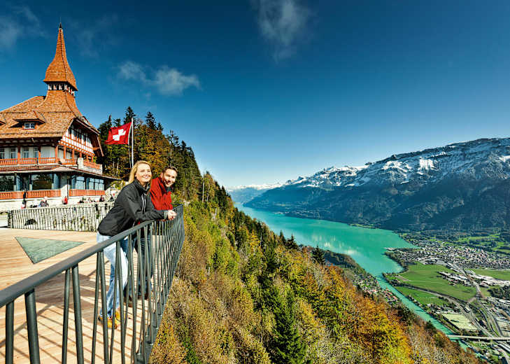 Während des gut dreistündigen Aufstiegs wird man nicht nur mit einer schönen Aussicht auf Interlaken und das mächtige Dreigestirn Jungfrau, Eiger und Möch der Berner Alpen belohnt, im Bergrestaurant Harder Kulm kann man sich auch kulinarisch so richtig verwöhnen lassen.