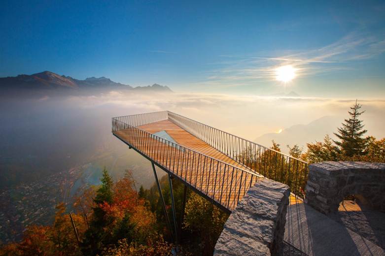 Vom Hausberg der Interlakener, oder noch besser von der Sonnenterrasse des gleichnamigen Panoramarestaurants, bietet sich nämlich nach gut fünfstündigem Aufstieg ein fantastischer Blick auf die imposanten Bergriesen Jungfrau, Eiger und Mönch der Berner Alpen.