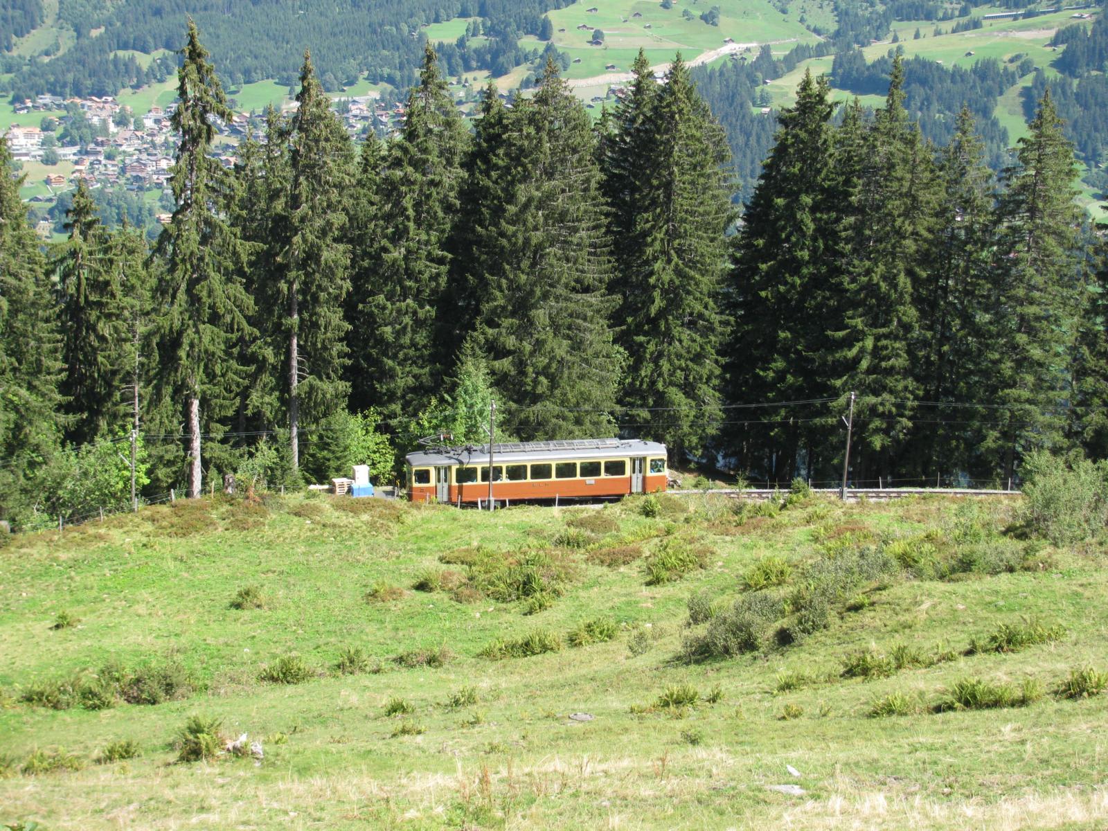 Zurück fährt man mit der Mürrenbahn zur Grütschalp und von dort mit der Seilbahn hinunter nach Lauterbrunnen.