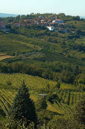 Auf der linken Talseite weiter wandernd, erreicht man schließlich die Straße, die Richtung Medana hinauf führt. Medana liegt auf 185 m und ist einer der bedeutendsten Orte der Region Goriška Brda.