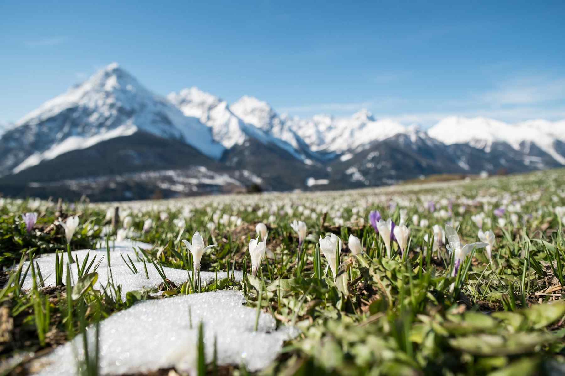 Der Frühlings kämpft sich durch. Foto: Dominik Täuber, Tourismus Engadin Scuol Samnaun Val Müstair AG