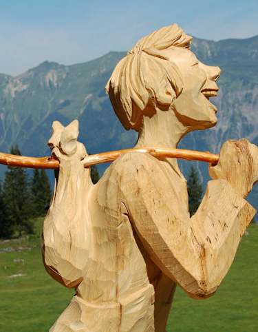 Ab Egg (1.872 m) geht es stetig steiler bergab. Man passiert Alphütten und riesige Tannen. Der Wanderweg verzweigt sich etwas weiter unten, und es bietet sich die Möglichkeit, den Rest der Strecke auf einem Naturweg zu wandern.