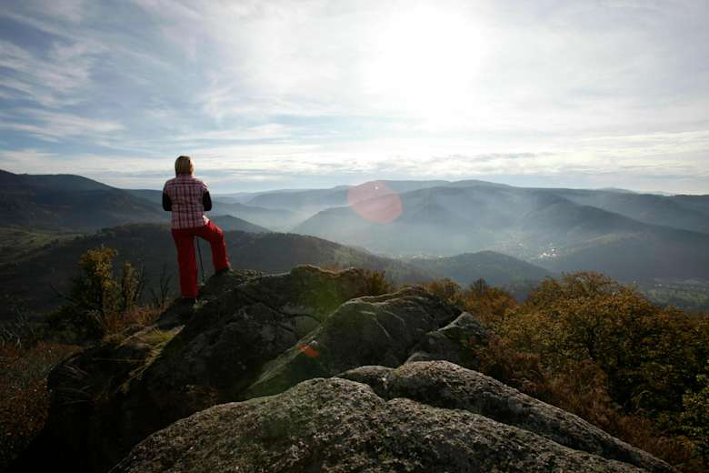Beim Hotel Wolfsschlucht quert man die Straße und auf einem Abschnitt des Wanderweges „Gernsbacher Runde“ geht es steil bergauf zum 668 m hohen Merkur. Die grandiose Aussicht auf Baden-Baden lädt auch zu einer wohl verdienten Pause ein.