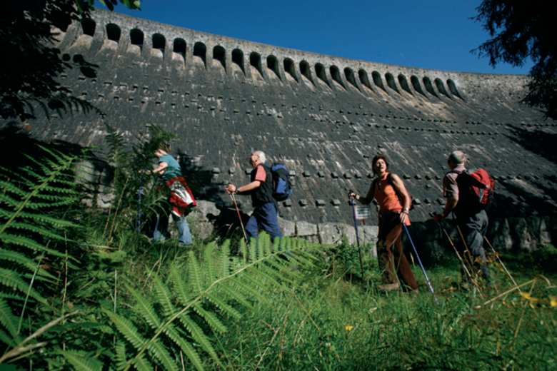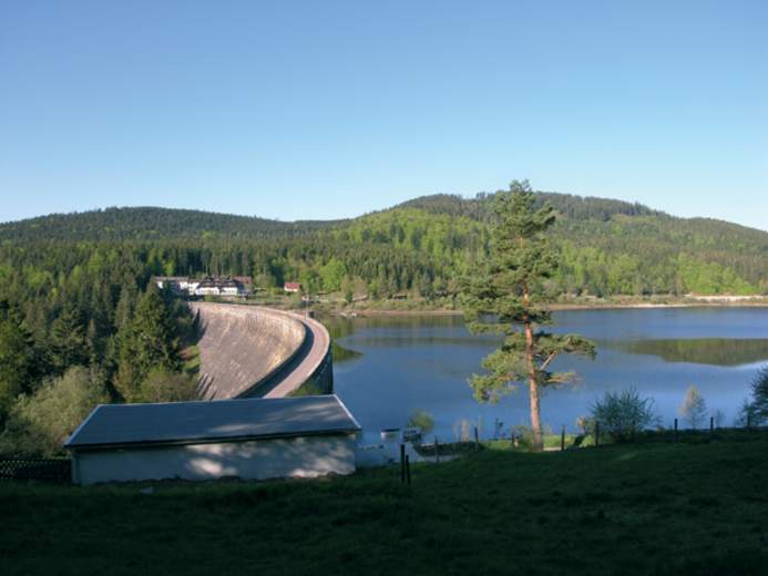 Gemütlich geht es weiter bis zur Schwarzenbachtalsperre, dem immerhin größten Stausee im Nord- und Mittelschwarzwald. Der Weg führt Anfangs entlang des Sees, bald darauf aber 65 Meter abwärts bis zum Fuß der mächtigen Staumauer.