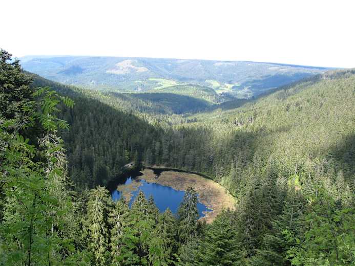 Durch dichte Wälder geht es nun weiter hinein in den 2014 gegründeten Nationalpark Schwarzwald. Der idyllische Huzenbacher See lädt zu einer Pause ein. Auf diesem tiefsten Karsee des Schwarzwaldes blühen im Juni und Juli unzählige Teichrosen.