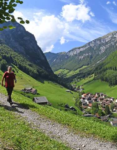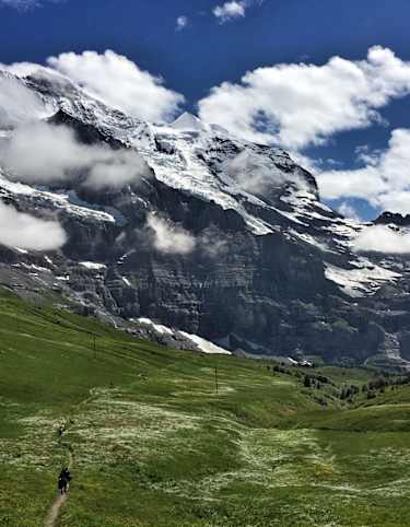 Eine herrliche Aussicht auf Grindelwald bietet sich nun dem Wanderer. Die gegenüberliegende Kette mit Faulhorn und Schwarzhorn ist fantastisch. Am Fuße des Eigers verläuft der Wanderweg abschließend weiter durch Wälder, wunderschöne Lichtungen und vorbei an kleinen Bergbächen Richtung Alpiglen.