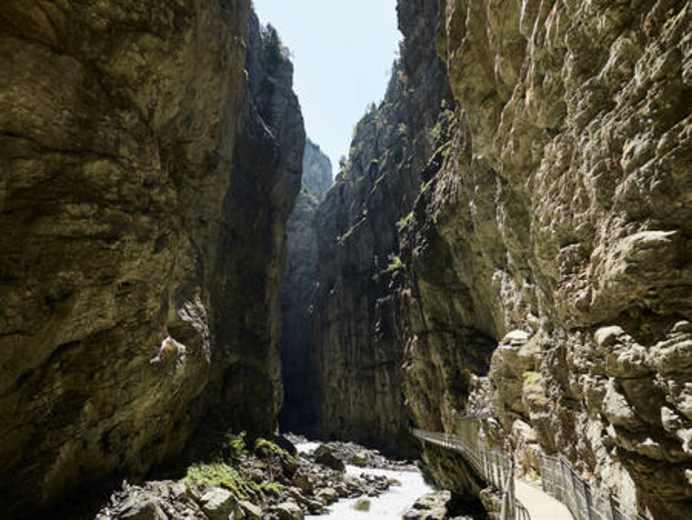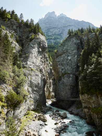 Man wandert vorbei an den bezaubernden Chalets und folgt der Lütschine zur beeindruckenden Gletscherschlucht. Künstliche Stege helfen, das tosende Schmelzwasser der Lütschine zu überqueren, während zu beiden Seiten die stellenweise glattgeschliffenen Wände mehr als 100 m in die Höhe ragen. Der folgende Aufstieg zur Boneren führt über Felsen und gesicherte Leitern.