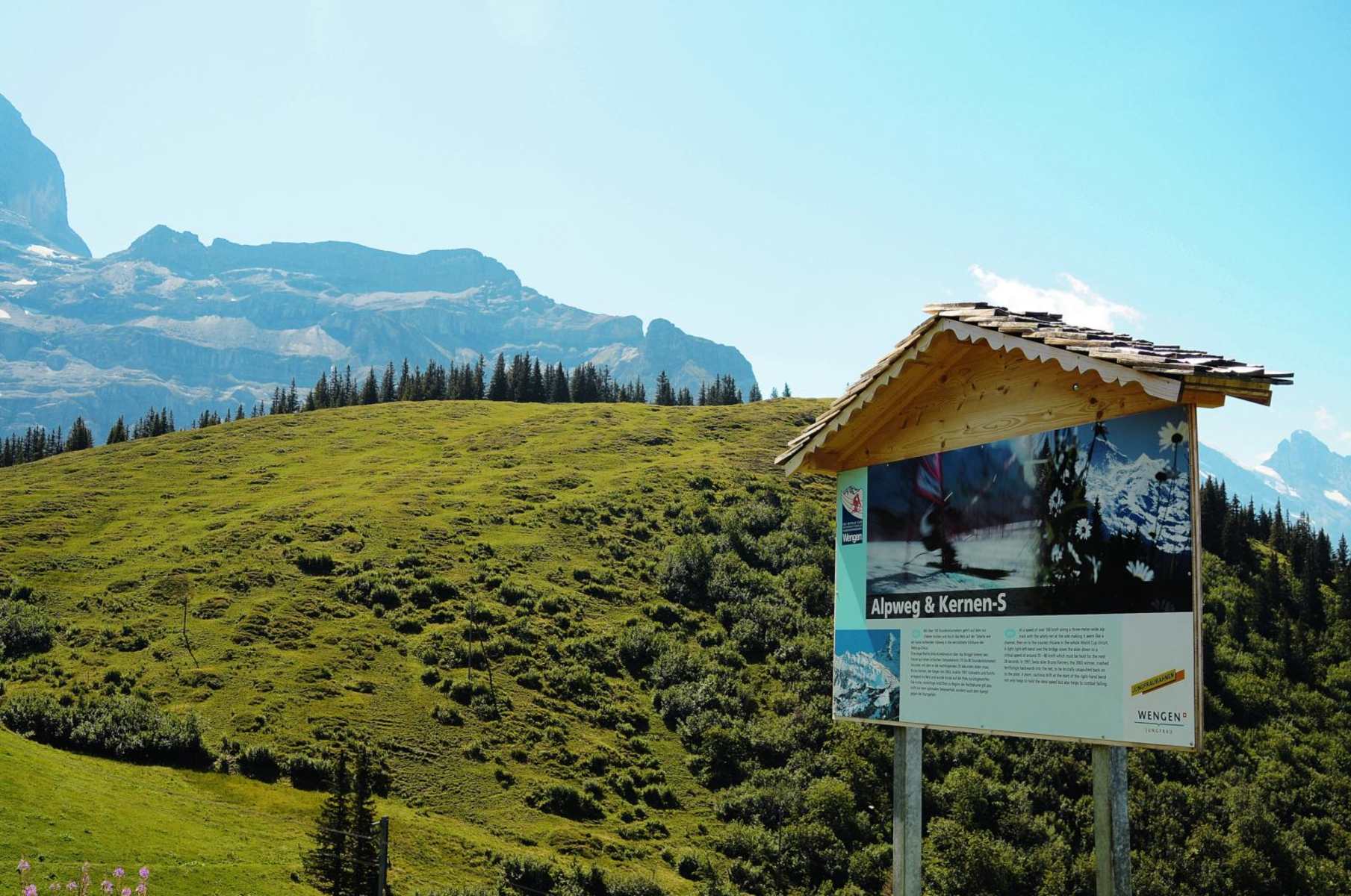 Infotafeln entlang des Lauberhorn-Trails (2.313 m) vermitteln allerlei Wissenswertes über die anspruchsvolle Strecke in den Berner Alpen, und mittels Viewer kann man die einzelnen Passagen sehr gut verfolgen.