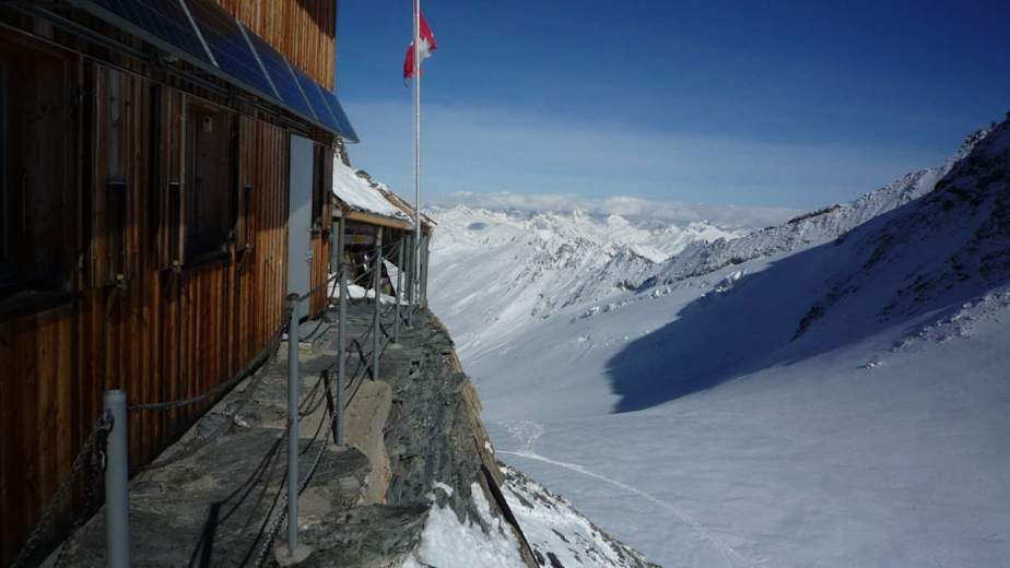 Die Oberaarjochhütte auf 3.256 m ist spektakulär gelegen. Das Schutzhaus liegt unmittelbar am südlichen Fuß des Oberaarhorn 3.631 m. Um zu der Oberaarjochhütte zu gelangen muss man den ausgedehnten Oberaargletscher queren. Dieser ist bekannt dafür, dass er einige heimtückische Spalten hat.