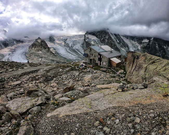 Die Cabane du Grand Mountet (2.886 m) ist sicher eines der großen Hüttenziele in den ganzen Alpen. Der Hüttenaufstieg führt in einen völlig entlegenen Gletscherkessel. Beherrschend ist hier nicht eine große Weitsicht, sondern der beeindruckende Blick auf die riesigen Gletscherströme und die riesigen Berge, die wie in einem Amphitheater in den Himmel ragen.