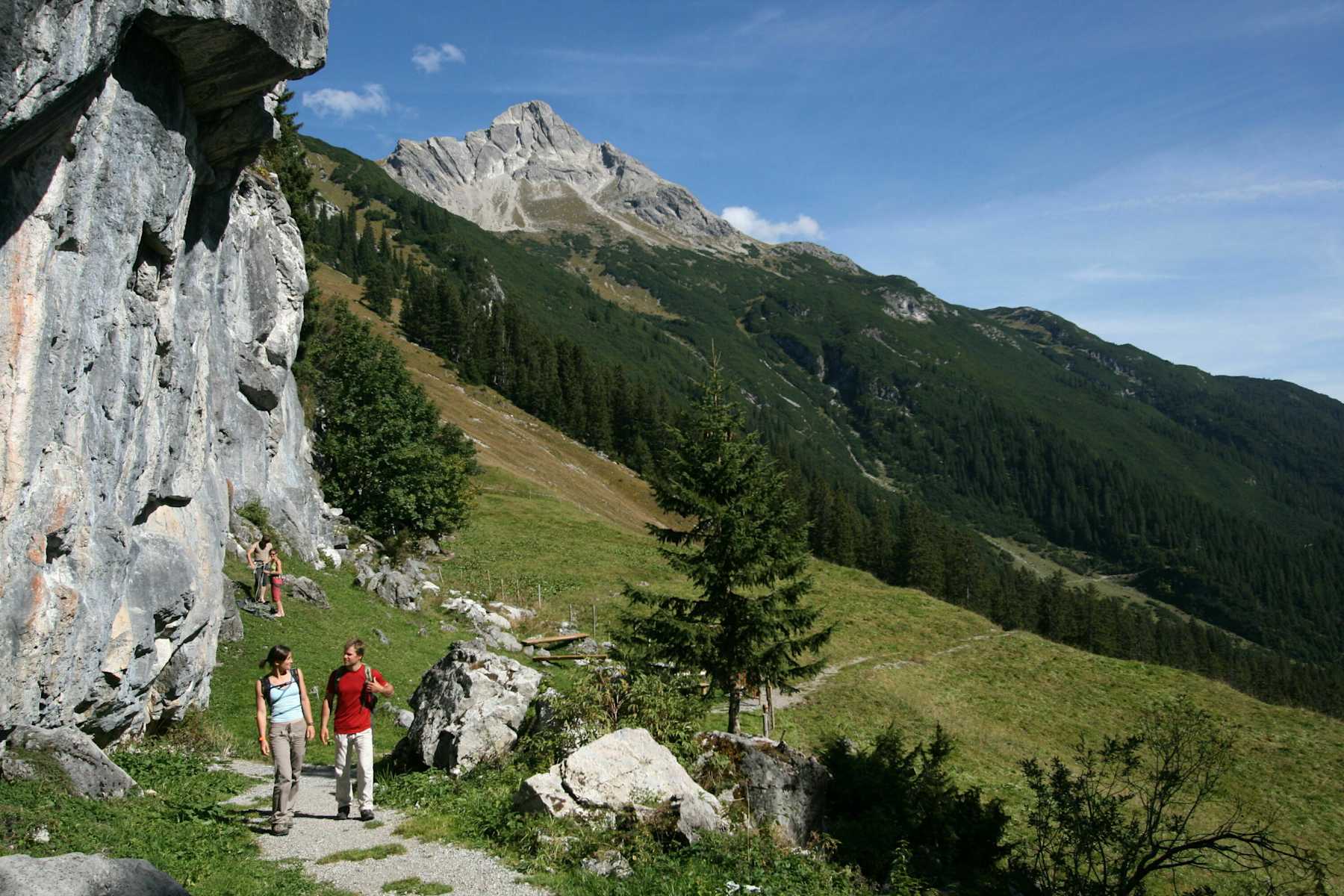 Anfangs führt der Weg aufwärts, dem Panoramaweg über die Lahetalpe bis zum Tieftaltobel folgend. Am Tobel verlässt man den Panoramaweg und erreicht kurz danach den höchsten Punkt der Etappe mit rund 1.560 m. Immer wieder genießt man auf dem weiteren Wegabschnitt nach Steeg wunderbare Blicke ins Lechtal.