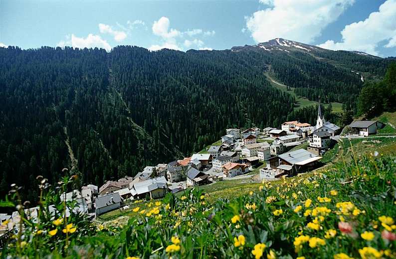 Via Reschenpass nach Kajetansbrücke, dort Richtung Spiss - Samnaun auf der L348
