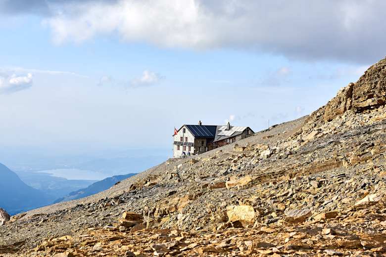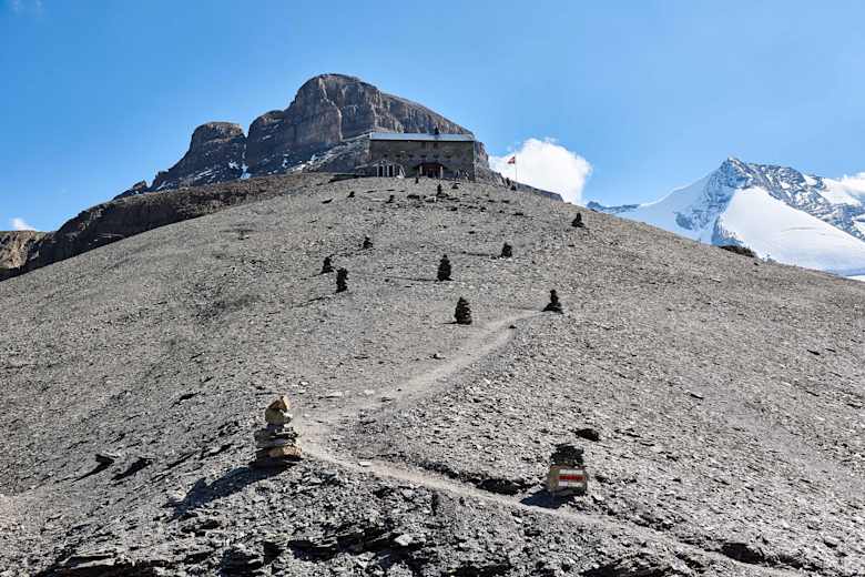 Von den Bärglialmen geht man in alpiner Landschaft weiter zum „Hochtürli“ auf 2.778 m, einem Joch kurz unterhalb der Hütte. Nun weiter zur Blümlisalphütte (2.840 m), die nicht mehr weit entfernt ist.