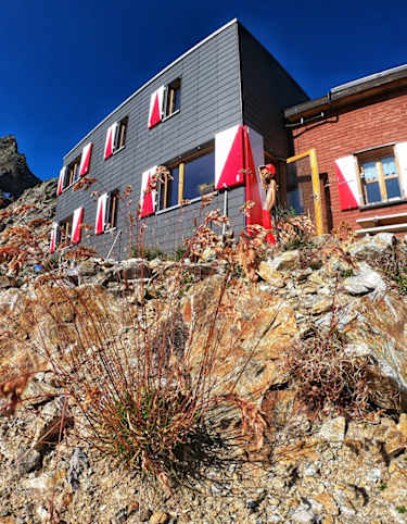 Der Hüttenaufstieg von Saas Fee (1.792 m) zu den Mischabelhütten (3.340 m) ist ein technisch anspruchsvoller Weg, der an und für sich schon eine lohnende Tour ist. Die Drahtseilsicherungen enden direkt vor den Hütten, die an die Felsen inmitten der fantastischen, schneebedeckten 4000er-Kulisse der Walliser Alpen im Kanton Wallis thronen.