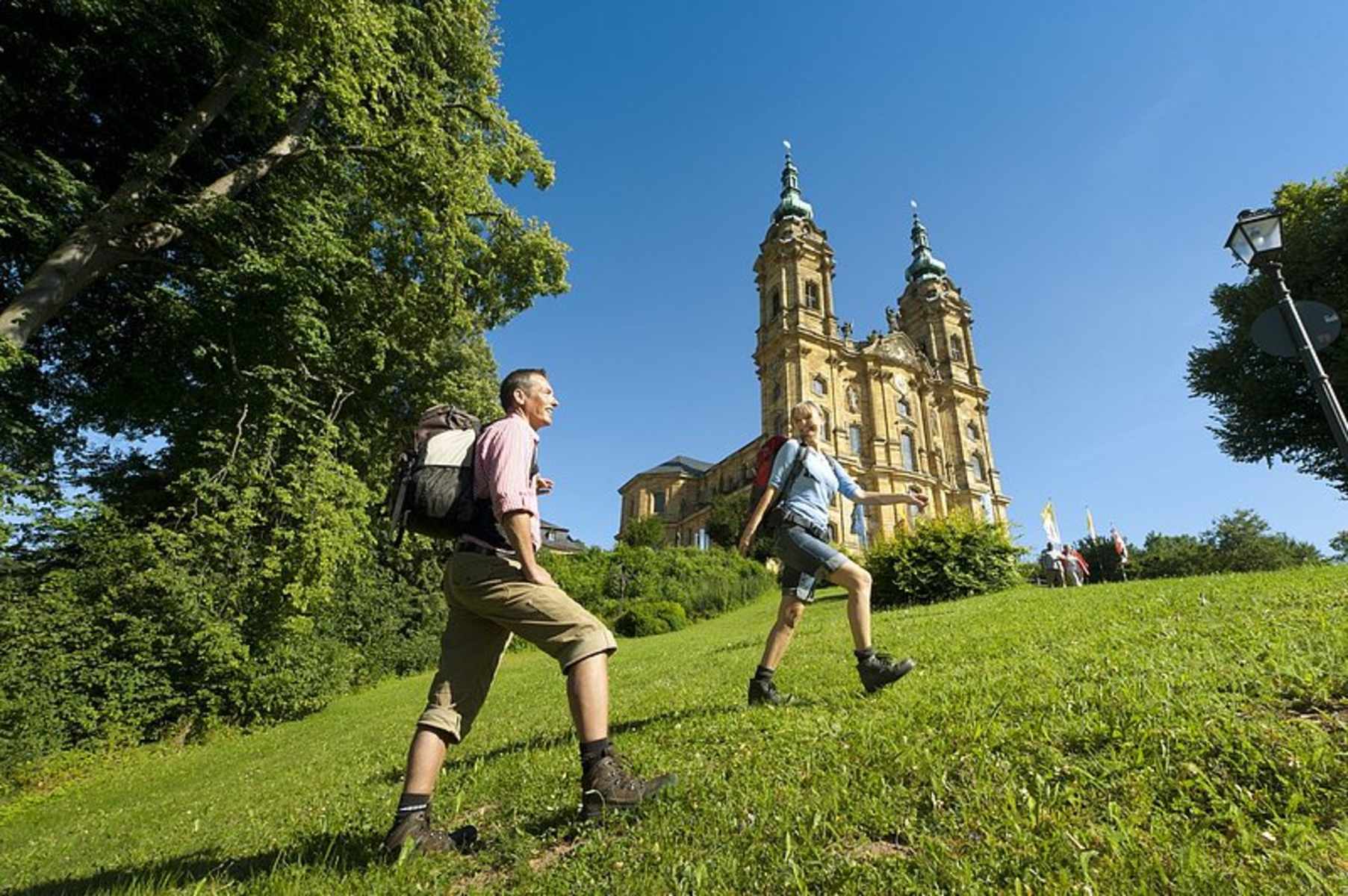 Einen Besuch wert ist die Basilika Vierzehnheiligen bei Bad Staffelstein: Nachdem vor mehr als 500 Jahren einem Schäfer die 14 Heiligen Nothelfer erschienen und ihm auftrugen, eine Kapelle zu erreichten, entstand daraus nach wechselvoller Geschichte durch Balthasar Neumann einer der bedeutendsten Barockbauten Bayerns.