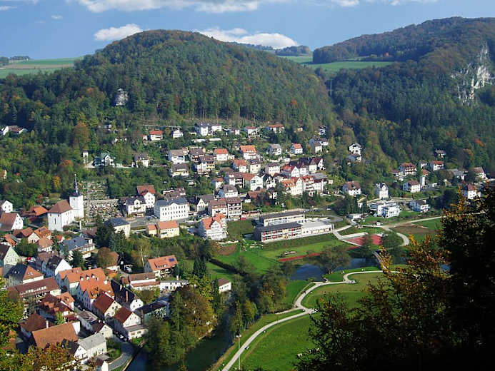 Die erste Etappe des 4. Abschnittes des Frankenweges führt von Heiligenstadt i.OFr. entlang des Leinleitertales und vorbei an der Binghöhle bei Streitberg nach Muggendorf in der zentralen Fränkischen Schweiz.