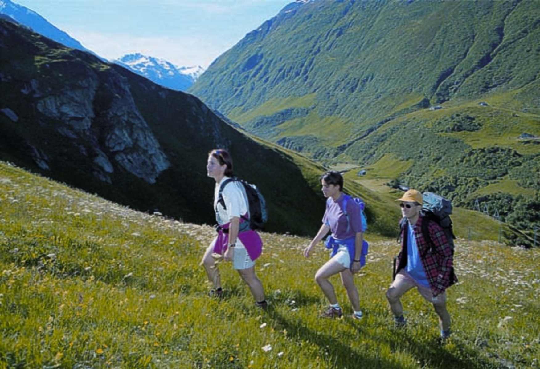 Schöne Wanderung in den Bündner Alpen in Uri: Auf dieser Etappe der Senda Sursilvana geht es von Oberalp nach Andermatt. Sowohl anspruchsvolle wie auch ungeübte Wanderer erfreuen sich an dieser abwechslungsreichen Route, die auch in umgekehrter Richtung in Angriff genommen werden kann.