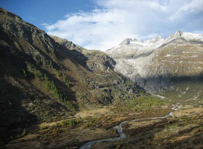 Auenlandschaft bei Gletsch, Rückzugsgebiet des Rhonegletschers Foto: Stiftung Vier-Quellen-Weg im Gotthardmassiv