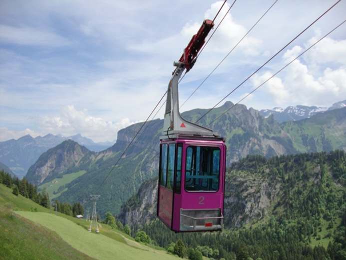 Während der Fahrt mit der Luftseilbahn hat man tollen Blick auf malerischen Bergkulisse der Urner Alpen.