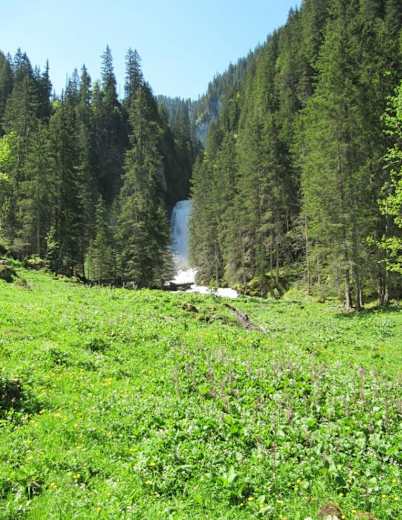 Zurück ins Giessbachtal läuft man entlang eines kleinen, etwas ausgesetzten Wegleins oder über die Fahrstrasse, die im hinteren Talgrund mündet, und gelangt schlussendlich wieder nach Bramisegg.