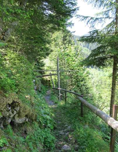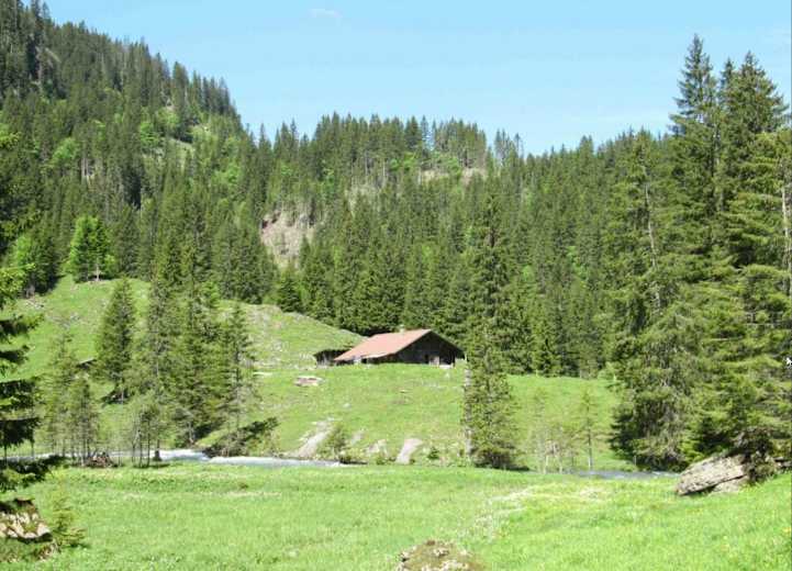 Der nächste Anstieg folgt sogleich und endet auf der Alp Botchen (1.330 m), einem Paradies mit felsigen Abhängen und grünen Wiesen. Nach der Überquerung des Bachs führt der Weg zunächst bergauf zum Botchenhals (1.500 m) und danach bergab zur Staatshütte (1.430 m) und in den Bauwald.