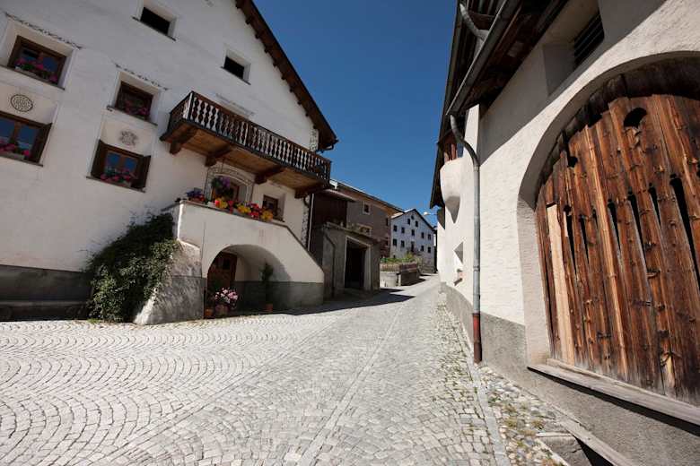Der Weg führt durch kleine Gassen.Foto: Tourismus Engadin Scuol Samnaun Val Müstair AG, Andrea Badrutt, Chur