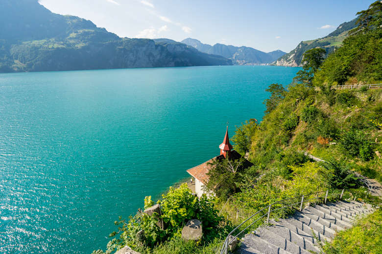 Der Weg der Schweiz windet sich um den tiefen Urnersee, mal hoch oben, dann wieder direkt am Ufer. Mal führt er dich über in Fels gehauene Treppenstufen, dann verläuft er wieder auf breiten bequemen Wegen, vorbei an vielen Rast- und Badeplätzen. Immer wieder geniesst du eine herrliche Aussicht auf den See und die umliegenden Berge. Dank der Schifffahrt hast du die Wahl zwischen einer Vielzahl möglicher Ausgangs- und Zielpunkte.