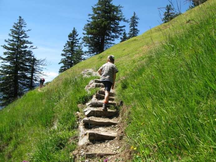 Nach einer gemütlichen Fahrt mit der Luftseilbahn erreicht man die Eggbergen. Nach einem kurzen Anstieg durch einen zauberhaft kühlen Wald erreicht man den Hüttenboden.