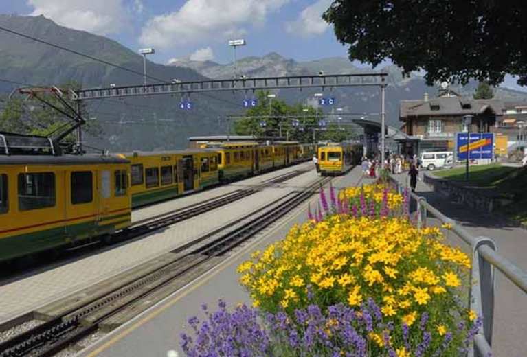 Mit der Bahn zum Bahnhof Interlaken Ost, umsteigen und weiter mit der Berner Oberland-Bahn (BOB) nach Lauterbrunnen fahren. Von dort mit der Wengernalpbahn (WAB) zur Station Allemend.