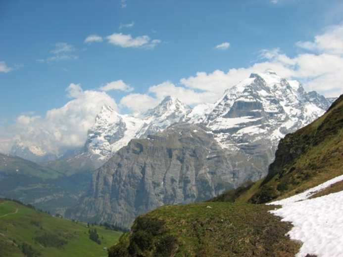 Der Abstieg führt zum Bryndli, weiter zur Spilbodenalp und abschließend nach Gimmelwald (1.367 m) oder alternativ nach Mürren (1.650 m).