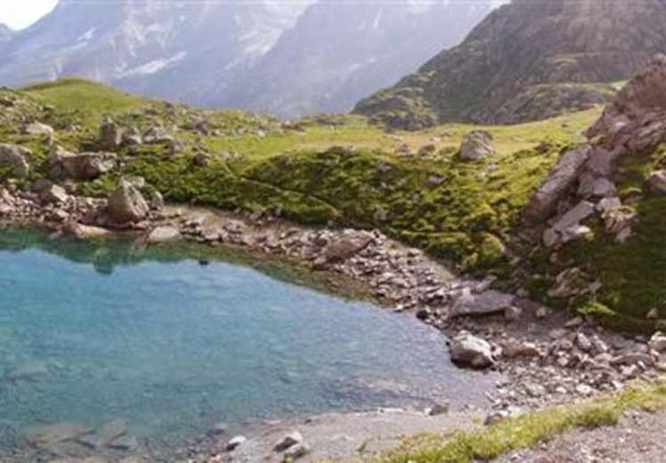 Der Oberhornsee (2.065 m) ist ein wahres Kleinod im Unesco-Weltnaturerbe Schweizer Alpen Jungfrau-Aletsch. Kein und blau liegt er in einer beeindruckenden alpinen Landschaft des Berner Oberlandes.