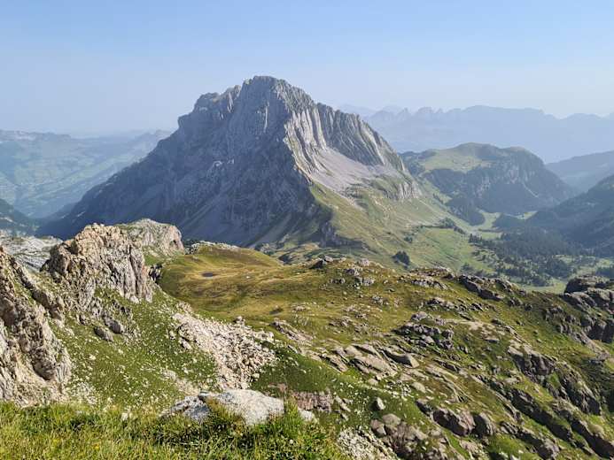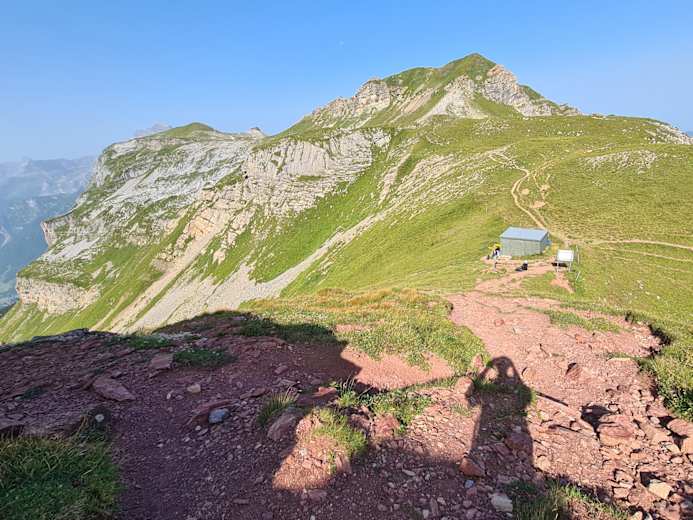 Von Bärenboden startet die Tour via Aeugstenhütte steil hinauf zur Alp Begligen. Linker Hand drohnt der massive Schilt. Weiter führt der Weg auf der einsamen, langen und anstrengenden Rotärdroute, wo schließlich plötzlich der Mürtschenstock auftaucht. Ebenso faszinierend ist der rote Boden um Rotärd.
